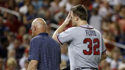 After making his first pitch in the seventh inning, Floyd flexed his right arm awkwardly. Atlanta’s trainer came to the mound to examine Floyd and pulled him from the game.