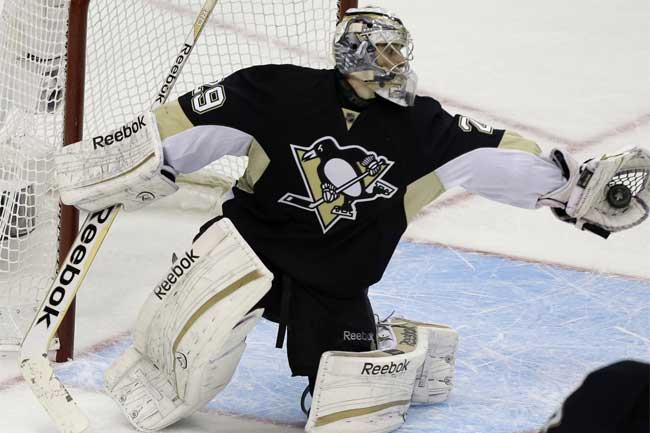 Pittsburgh’s Marc-Andre Fleury set a franchise record for playoff shutouts in Game 1 against the Islanders.